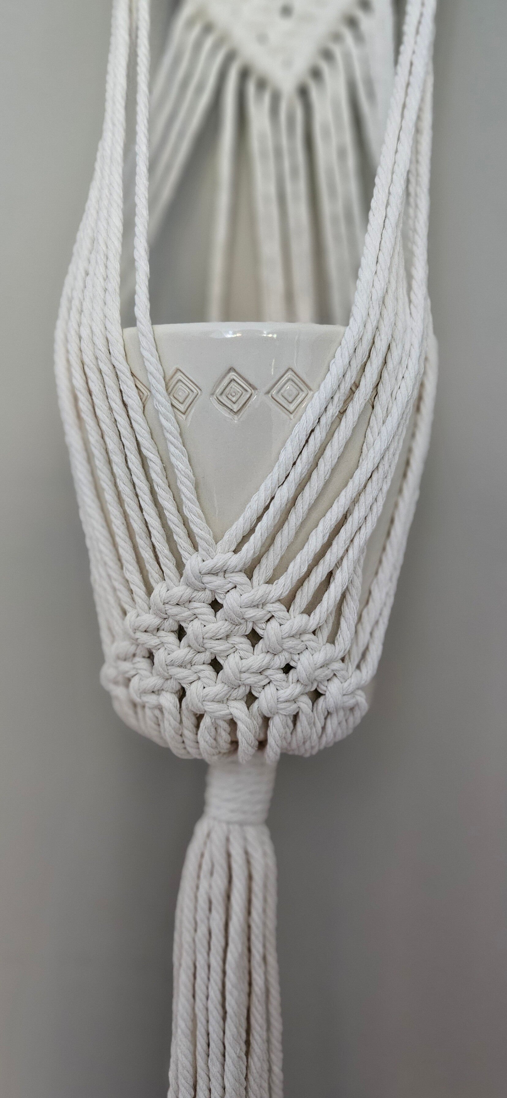 Een leuke macrame plantenhanger die past in elk interieur. De pot kriijg je erbij van ons.